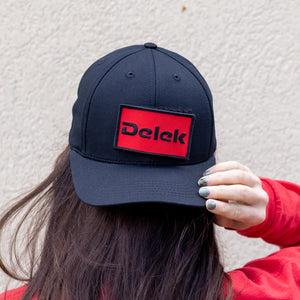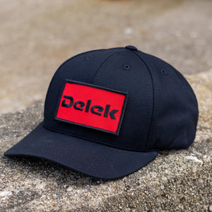 This top-of-the-line, hat is stitched and assembled in the USA and features both of the Delek patches as an embroidered graphic.