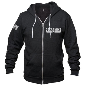 Wear Oscar Mike all winter long!  Simple and clean Oscar Mike logo on front left breast.  American Flag (assaulting) on right sleeve.