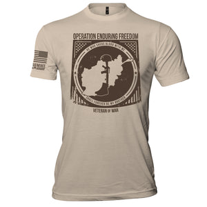 The Oscar Mike Operation Enduring Freedom 20 year memorial tee is presented in honor of all the US and allied warfighters who stood shoulder to shoulder defending the world against al Qaeda, the Taliban, and other terrorist groups in Afghanistan. Their service and sacrifice to country will never be forgotten. Forward Assaulting flag and Oscar Mike logo printed on the right sleeve.