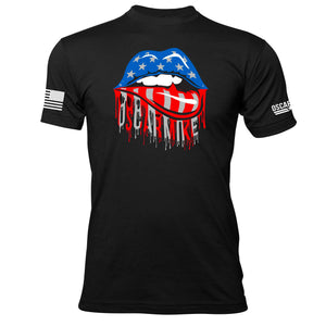 The world craves the Taste of Freedom. America has worked long and hard for it and she does it the best, hands down. It can get messy sometimes, but at the end of the day it is worth it just to savor the taste. This American-Made shirt is designed with red, white and blue lips dripping with the taste of freedom, the American Flag (assaulting) printed on the right sleeve and the Oscar Mike logo on the left sleeve.