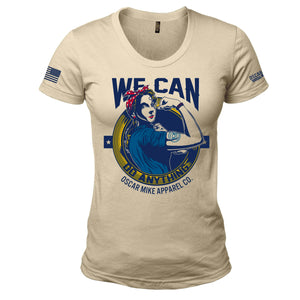 During WWII as women were encouraged to take wartime jobs in defense industries "We Can DO It!" became their collective mantra and continues to be a constant Oscar Mike reminder of their undeniable patriotism.