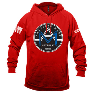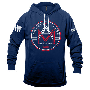 Spark a flame. Inspire a revolution. Start a movement. Here’s the logo for our movement to make “American Made” relevant again on an ultra soft pullover hoodie. Made in America obviously...American Flag (assaulting) printed on right sleeve. Oscar Mike logo printed on left sleeve.