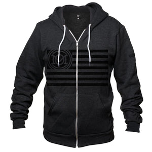 If you love the American Flag, freedom and everything that makes this country better than any other that has graced a world map, you'll want this new 100% American Made garment-dyed charcoal HERITAGE FLAG full-zip hoodie. This patriotic design lays out horizontally across the zipper and uniquely features Old Glory and its symbolism. An entire history since birth surrounded by sacrifice, service, and independence, show your honor for Old Glory!