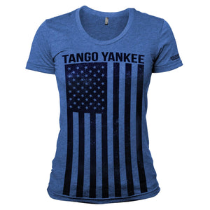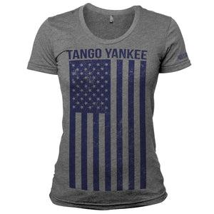 Tango Yankee is a way to say "Thank You" to the men and women who have devoted their lives to the service of our country in their own lingo. What better way to show your support for our Veterans? Jumbo size American flag with the words Tango Yankee printed on the front of a lightweight, ultra soft, women's cut tee.