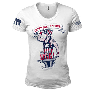 Uncle Sam sure is one tough S.O.B. swinging that sledge like its a feather. But doing things right, being direct, and telling it like it is ain’t easy. That’s exactly why we put his handsome mug on this genuine MADE IN THE USA t-shirt. Like our Uncle Sam, Oscar Mike knows a thing or two about putting in the work. We could use cheaper, less expensive, lower quality material, but that goes directly against everything we stand for. We’re tough, independent, we say yes sir and no ma'am, we’re not frivolous and you better believe we are VERY patriotic. Putting on this tee just might make you push your shoulders back a bit and hold your head up a little higher.