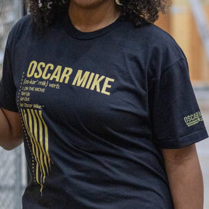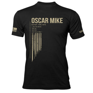 Tired of having to explain what Oscar Mike is to new people you meet? We're here to help! This ultra-soft tee has the OM definition and mantra for all to read. "Get Up. Get Out. Get Oscar Mike."