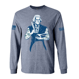 If you love the American flag, freedom and everything that makes this country better than any other that has graced a world map, then you'll love our new Thomas Jefferson "THE PRICE OF FREEDOM" 100% USA-MADE long sleeve shirt.