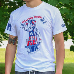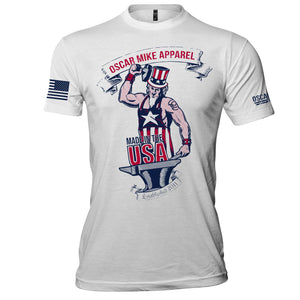 Uncle Sam sure is one tough S.O.B. swinging that sledge like its a feather. But doing things right, being direct, and telling it like it is ain’t easy. That’s exactly why we put his handsome mug on this genuine MADE IN THE USA Tee-Shirt. Like our Uncle Sam, Oscar Mike knows a thing or two about putting in the work. We could use cheaper, less expensive, lower quality material, but that goes directly against everything we stand for. We’re tough, independent, we say yes sir and no ma'am, we’re not frivolous and you better believe we are VERY patriotic. Putting on this tee just might make you push your shoulders back a bit and hold your head up a little higher.