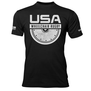 Represent the most impactful adaptive sport ever created and go for Gold! 100% of the proceeds from the entire Team USAWR collection are donated to the USAWR. To learn more about USAWR, please visit: https://usawr.org. American Flag (assaulting) printed on right sleeve. Oscar Mike logo printed on left sleeve.