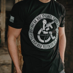 The Wheelchair Mafia tee is a classic and must-have for any closet. Oscar Mike has always felt an unwavering responsibility to protect and watch over the Veteran community. The reticle and firearm serve as symbols to show that we are not the typical textbook definition of "disabled". These Veterans are badasses who will always have your six.